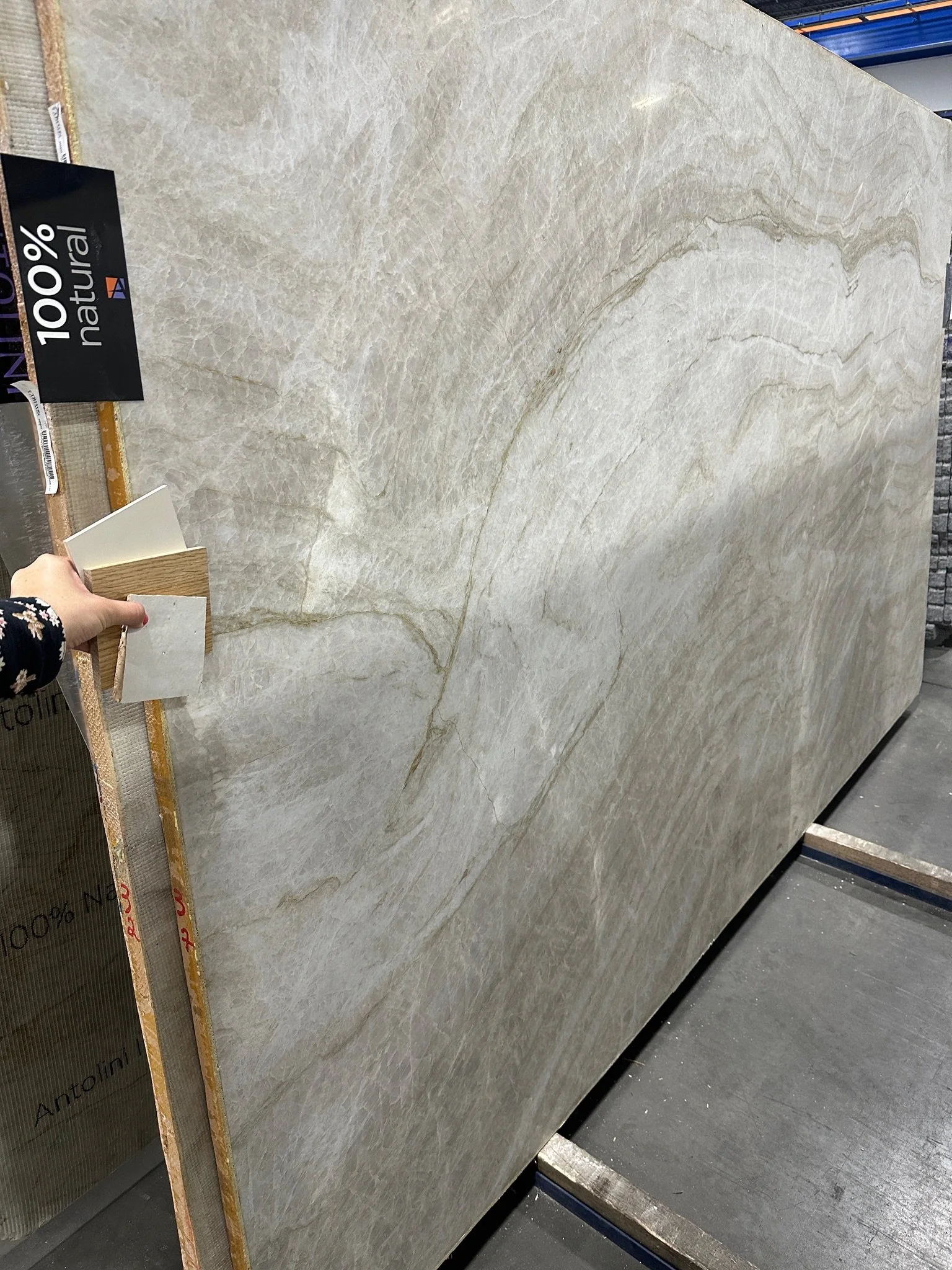Let’s talk about some favorites, starting with Taj Mahal quartzite. This warm-toned, creamy stone has the elegance of marble but the strength of granite, making it perfect for high-traffic areas like kitchens. Its soft veining brings a gentle sophistication that pairs well with almost any design style.